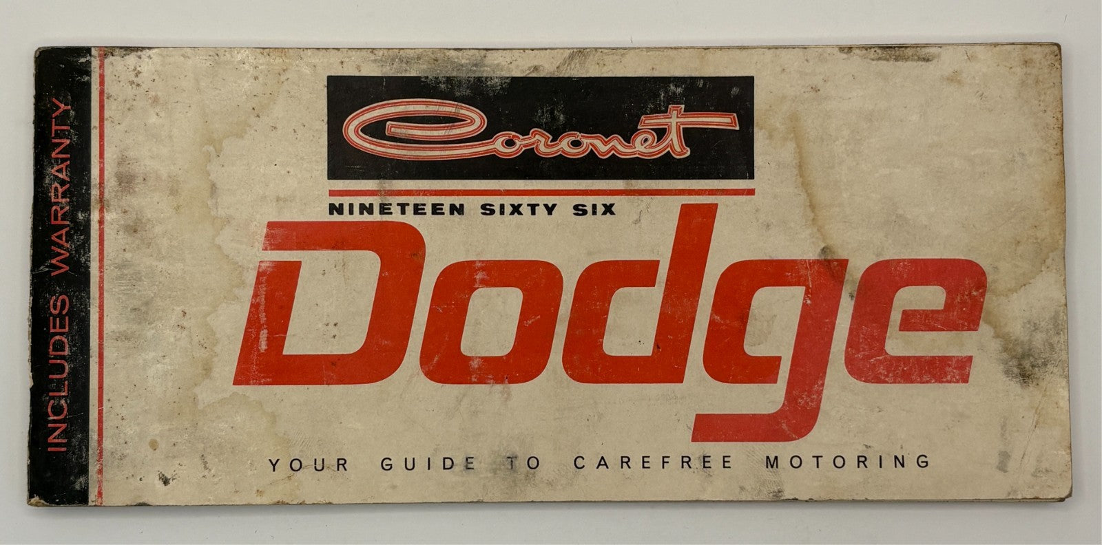 This is a 1966 Dodge Coronet operator manual featuring cream cover with red "Coronet" script logo and "Dodge" lettering. Original factory literature providing operation and care instructions for Dodge Coronet Deluxe, 440, and 500 models with comprehensive ownership information and "carefree motoring" guidance.