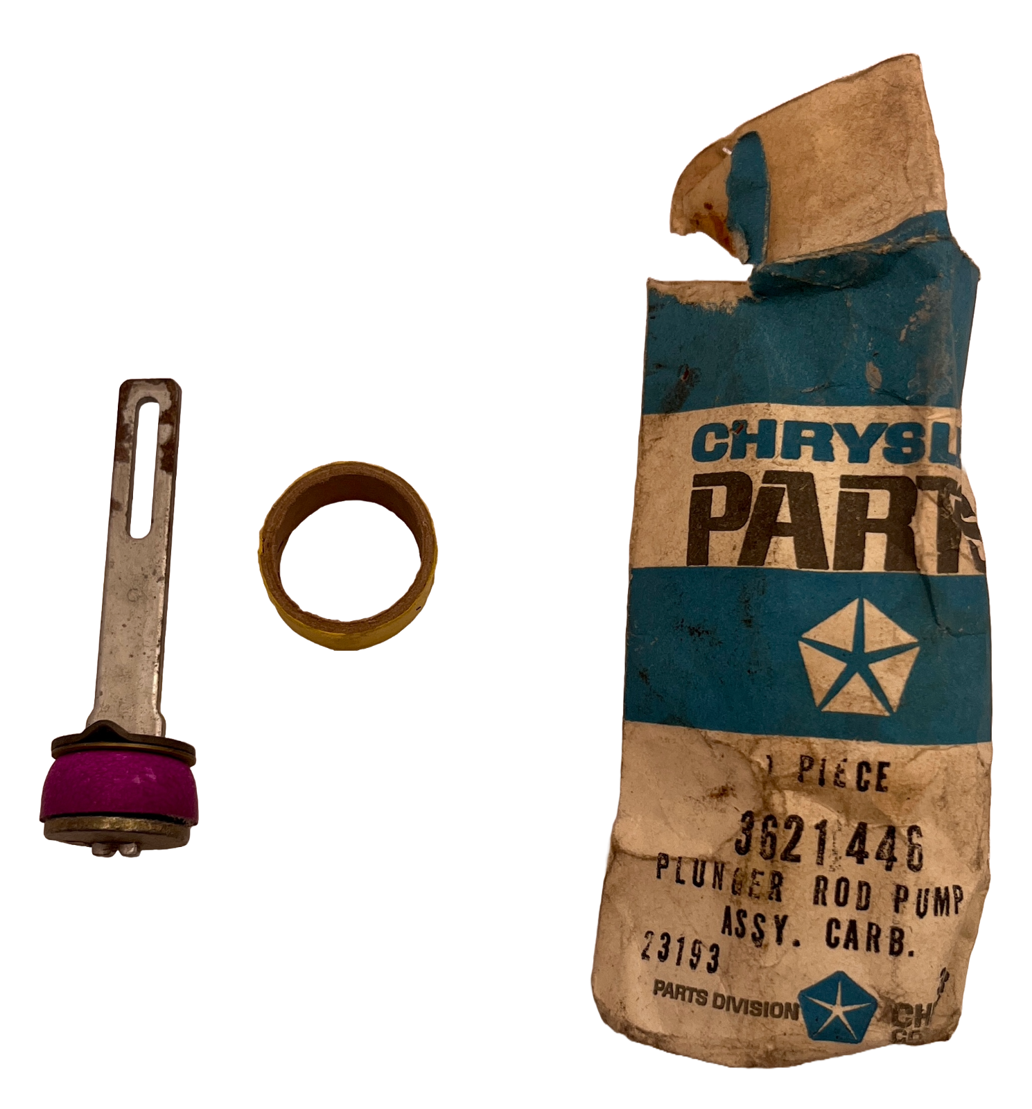 This is a New Old Stock carburetor accelerator pump for the models listed below. Original Mopar part in original packaging. For 2-barrel Carter carburetor with 383 engines.