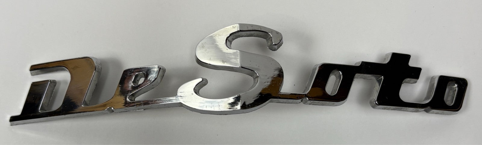 This is a New Old Stock DeSoto hood nameplate for the models listed. Original Mopar part.