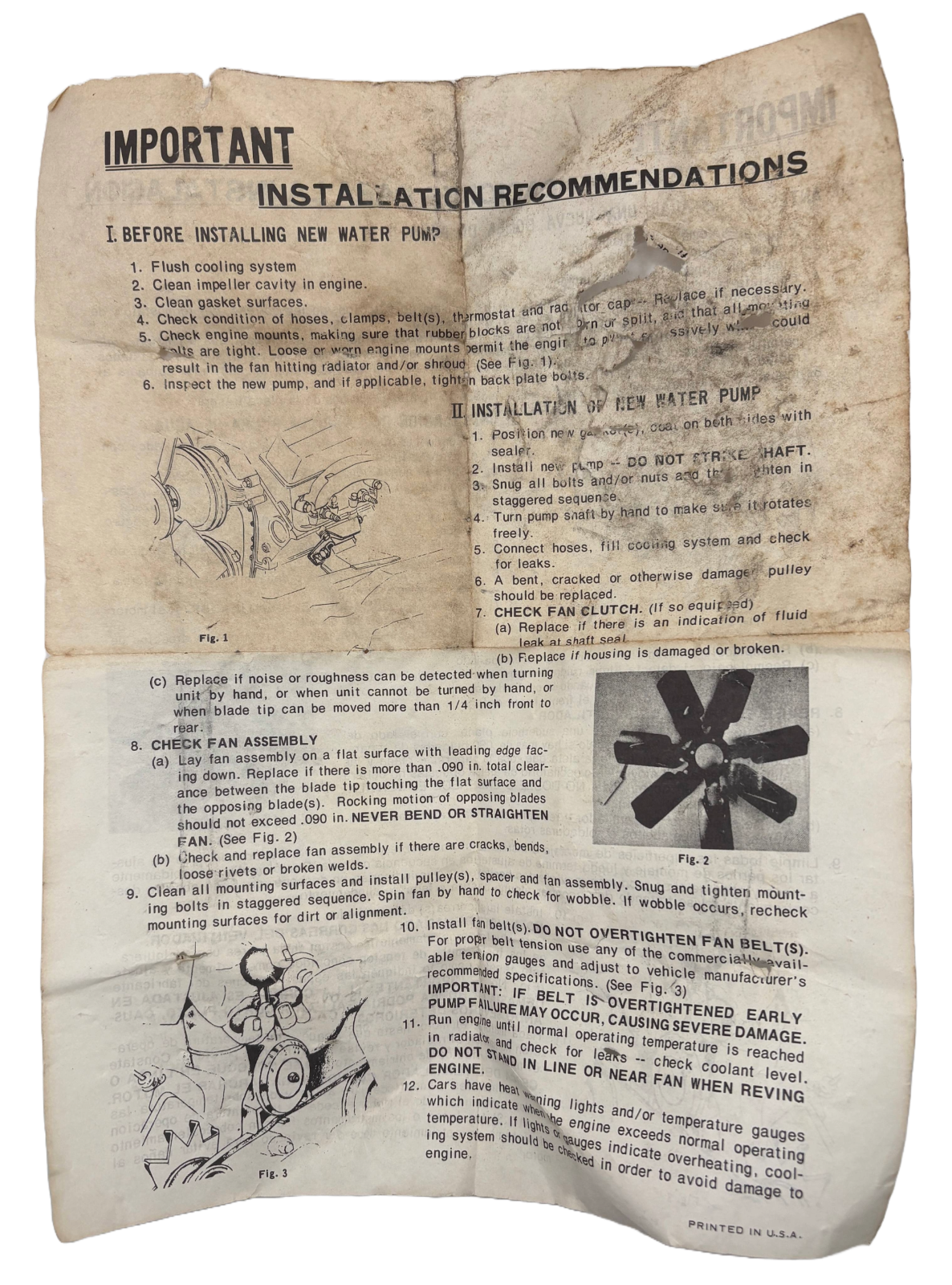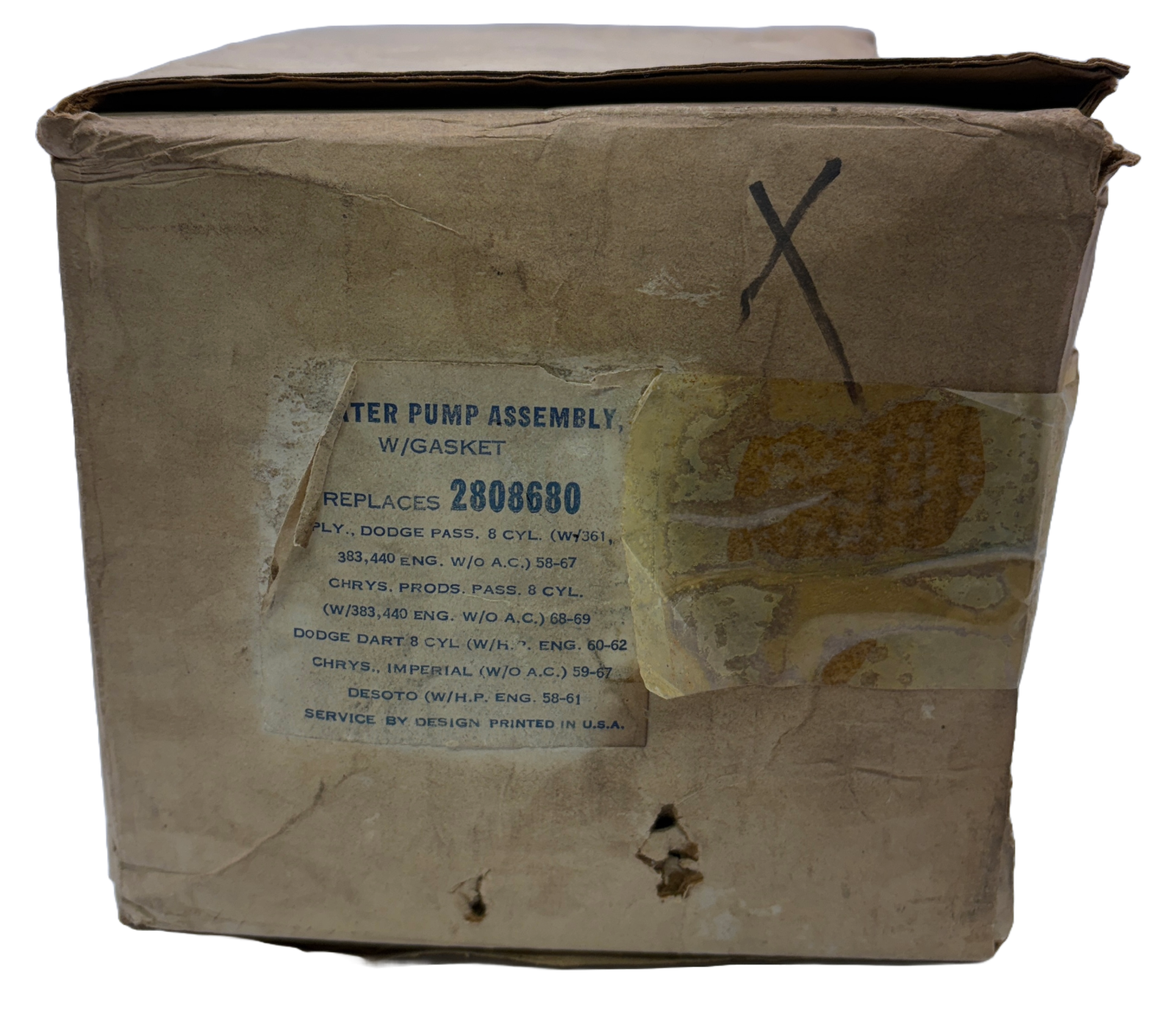 This is a New Old Reproduction Stock water pump assembly with gasket for all of the models listed below. Reproduction part in original packaging.