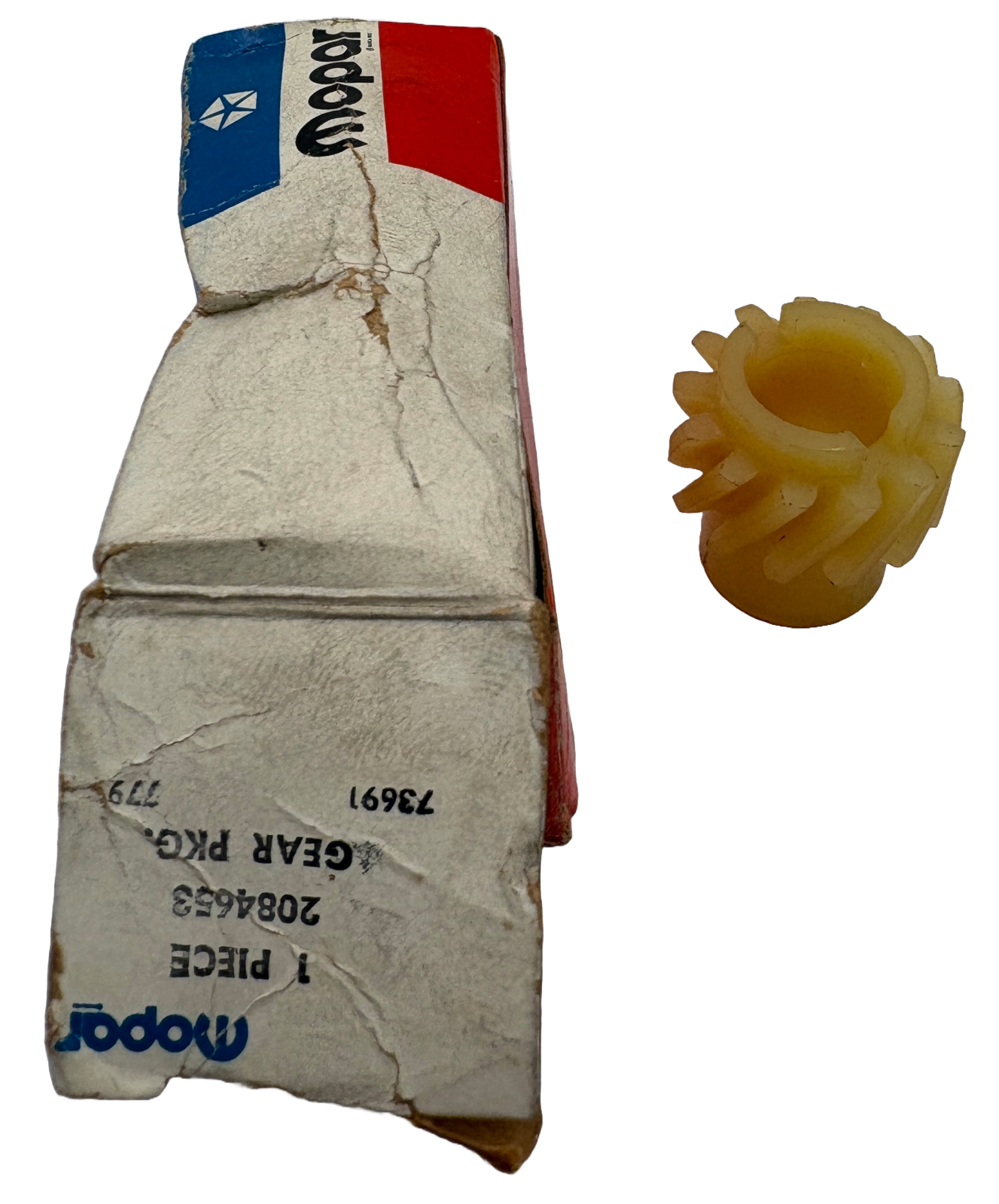 This is a New Old Stock distributor gear for the models below. Original Chrysler part in original packaging. For 6-cylinder engines with 170, 198, and 225 cubic inch slant six. Does not include roll pin.
