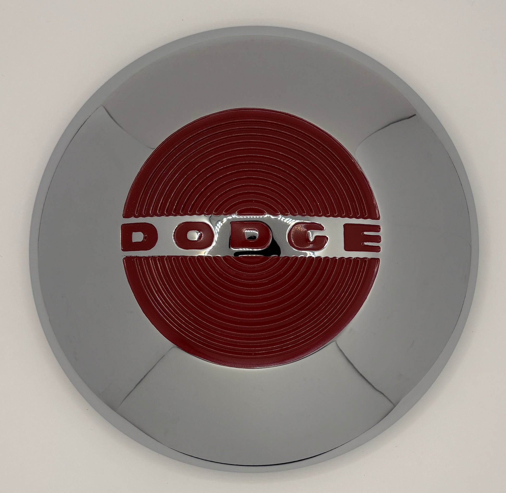 This is a new reproduction hub cap made by Roberts Motor Parts for B series Dodge Trucks built from 1948 to 1953. This show quality hub cap is correct for both 1/2 and 3/4 ton trucks.